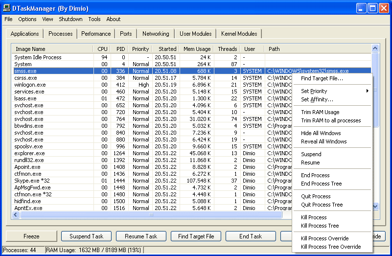 El valor predeterminado Windows Administrador de tareas le permite controlar aplicaciones, procesos A, y servicios actualmente en ejecución en el PC. También muestra estadísticas informativas sobre el sistema y el rendimiento # 8217 s y su red. Esto es similar a la de Windows incluido administrador de tareas, pero que le ofrece funcionalidades adicionales.