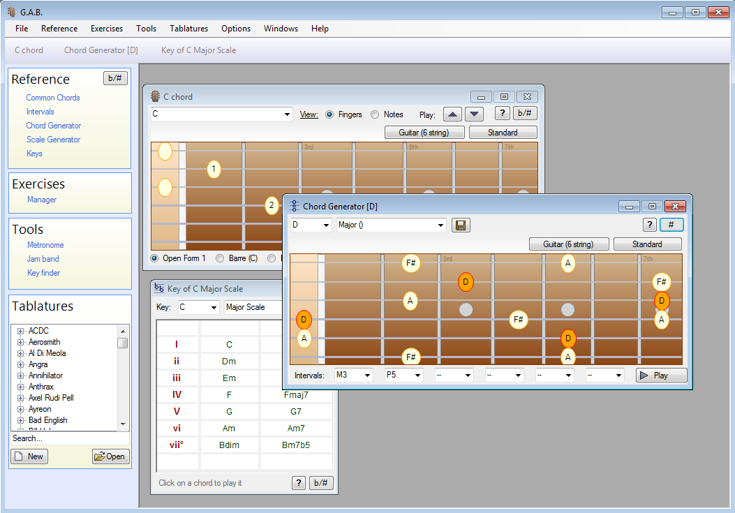 La APPA ¢ â ¢ s interfaz es muy profesional, y todo lo que necesita hacer para empezar es elegir el instrumento y el ajuste que desee. Después de eso, se puede determinar los acordes que necesita, analizar escalas, intervalos y llaves, así. Entre las características de esta pieza de software tiene que ofrecer que tenemos que también le permite utilizar un sintonizador, un metrónomo, del youà ¢ â ¢ ll ser capaz de realizar ejercicios, usar una llave y buscador de acordes, sonidos Personalizar, y mucho más.