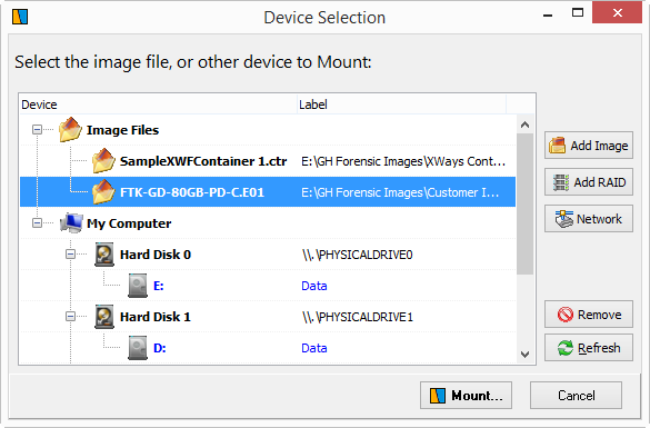La ventana principal de la aplicación permite al usuario ver la lista de imágenes montadas junto con el número de archivos de cada imagen contiene, l etiquetas , sistema de archivos y descripciones. El programa también puede ver los detalles vitales sobre una imagen y mostrar el contenido sin tener que montar la misma. La lista completa de los archivos de imagen compatibles con el programa incluye imágenes forenses como EnCase. (E01, EX01, .L01, .LX01), AccessData (AD1), DD y las imágenes RAW, y mucho más. Otros formatos de imagen incluyen la Manzana DMG, Microsoft VHD, y algunos sistemas de archivos de VMWare.