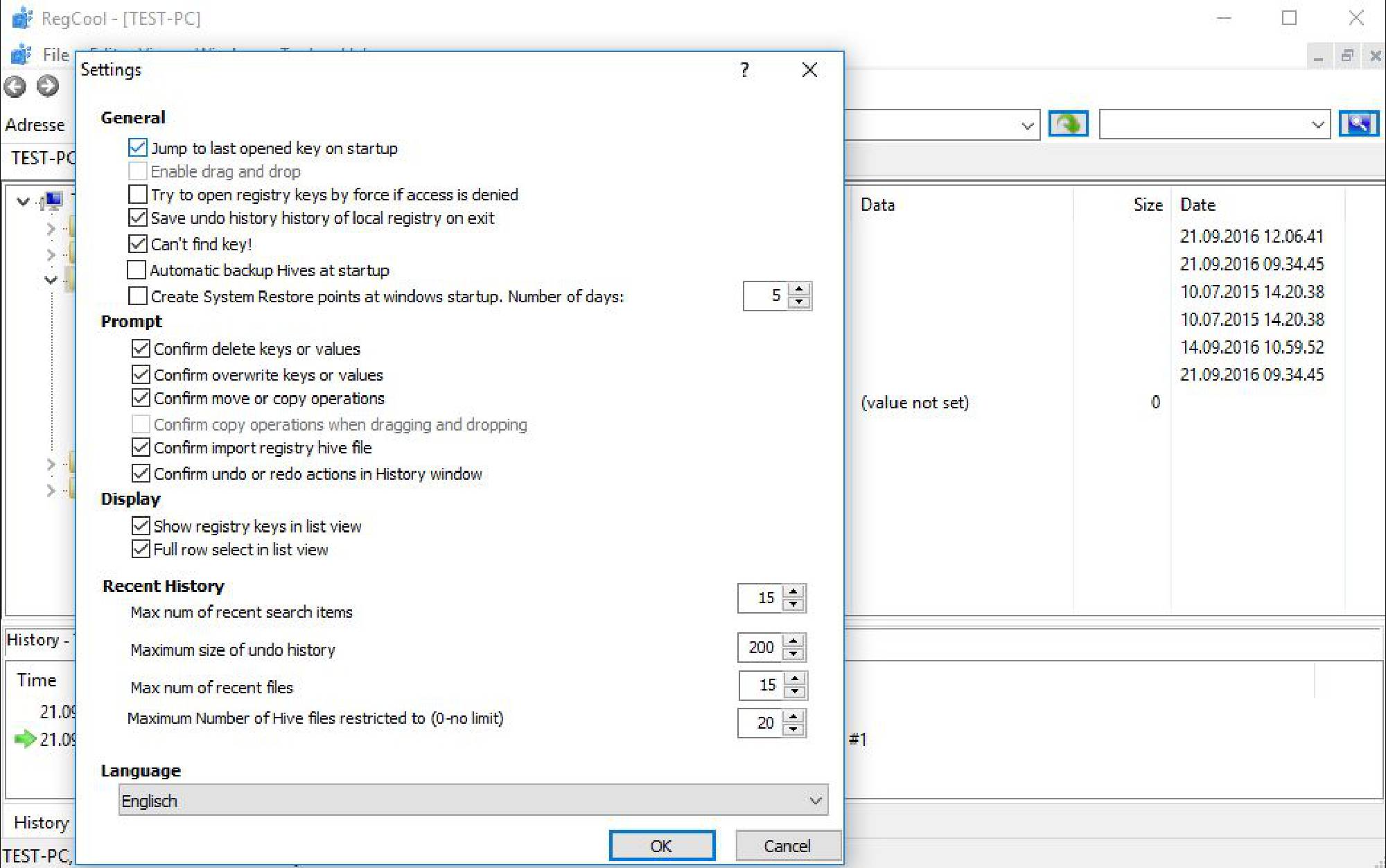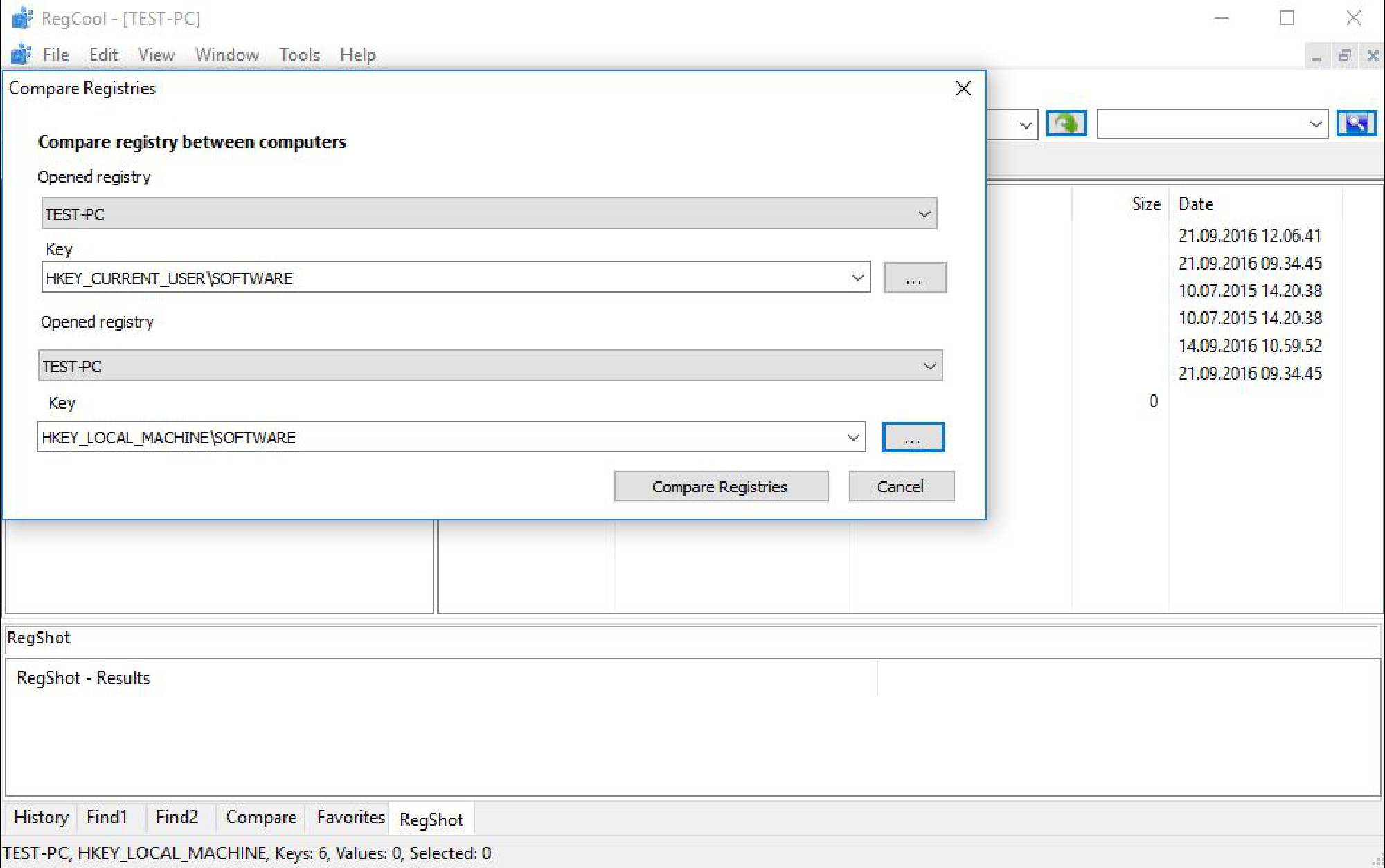 Otras funciones vitales incluyen la copia de seguridad y restauración de la registro, la comparación de diferentes instantáneas del registro, importar los favoritos de comando Regedit y muchos entornos diferentes.