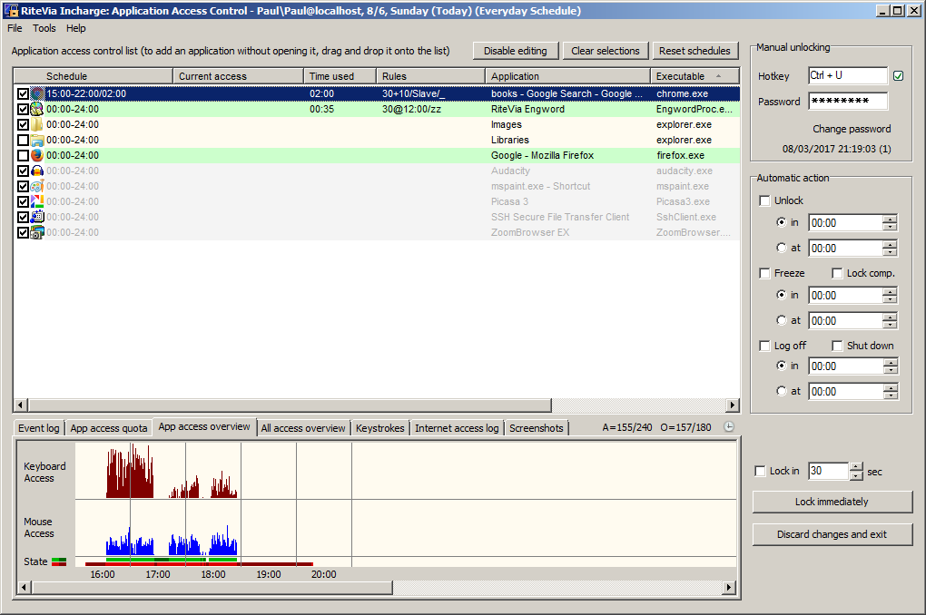 Se puede configurar el programa para bloquear el acceso a un programa oa la .internet después de un período