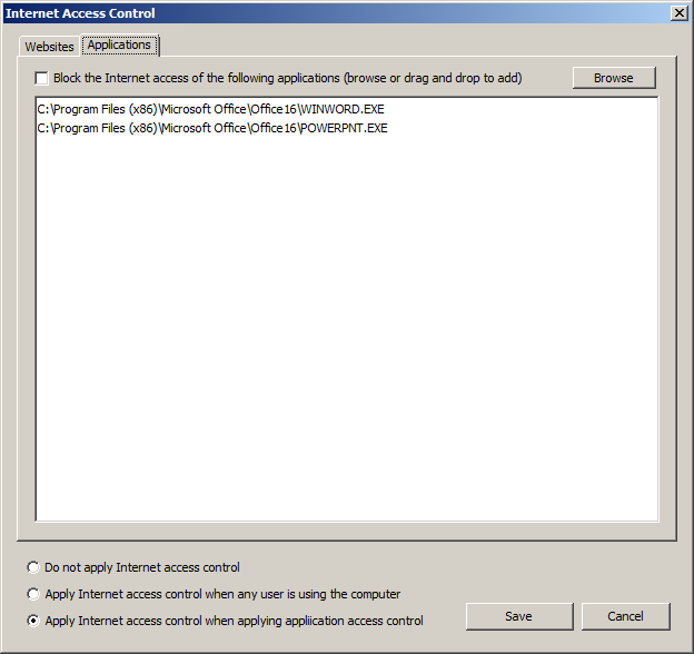 Manage (permitir o bloquear) acceso a Internet por aplicación
