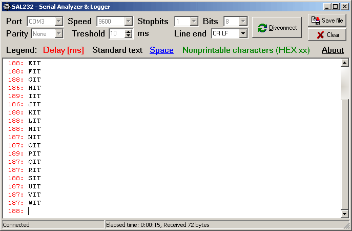 Este es convincente, utilidad fácil de usar cuando se tiene que examinar y registrar la correspondencia de serie. información conseguida se guardan junto con denota tiempo que pueden ser utilizados para examinar ajuste de tiempo. puntos de interés específicos (retardo de tiempo, caracteres hexadecimales, y así sucesivamente.) se ofrecen con diferentes matices. La información registrada se puede guardar en el documento RTF. It sólo un único documento .EXE y no se requiere ningún establecimiento. Se s transmitió como freeware. Con la parte superior de los convenios de intercambio de información accesibles out disponible, puede ser difícil de pantalla y controlar tipos distintivos de aparatos.