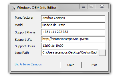 Editar información como el nombre del fabricante, el modelo, dirección URL de soporte y el teléfono, la ruta logotipo. Como usted debe haber adivinado, esta aplicación utiliza muy pocos recursos del sistema, por lo que no pone una tensión en la memoria del ordenador o de la potencia del procesador. Es muy sensible y no mostró signos de fallo durante todo el período de prueba.
