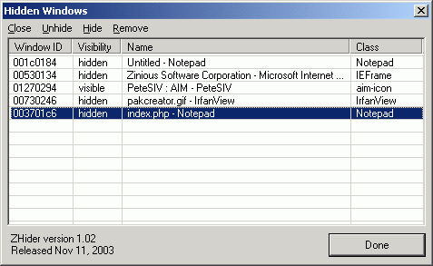 Trabajamos con muchos programas y muchas ventanas están en la pantalla. Esta utilidad permite ocultar diferentes ventanas con diferentes teclas de acceso rápido. Casi todo el mundo valora su privacidad, especialmente cuando se navega en Internet o trabajar en una red local. Hay muchas aplicaciones que tienden a ofrecer una buena seguridad para los usuarios de PC, y este es uno de los mejores de ellos. Esta aplicación ayuda a prevenir los distintos ojos que se aprovechan de la Internet para el acceso o ver lo que está pasando en una ventana activa. Debido a que esta aplicación es portátil, que ganó t tiene que instalar en un PC de forma manual. Se puede instalar en una unidad extraíble y puso en marcha en cualquier ordenador en el que se inserta la unidad. Curiosamente, su ganado registro de la PC t obtener cualquier nueva entrada, ya que la aplicación no se instala manualmente.